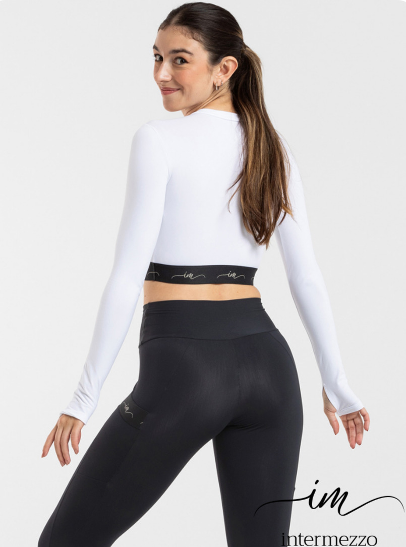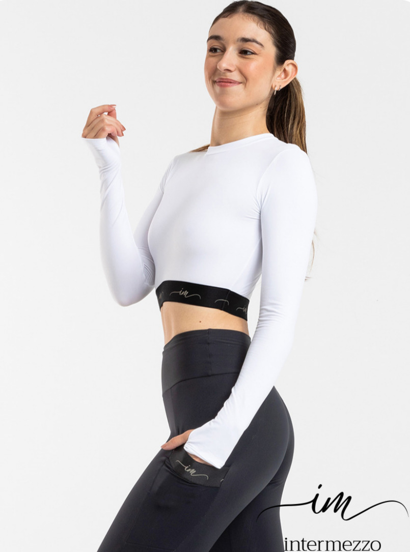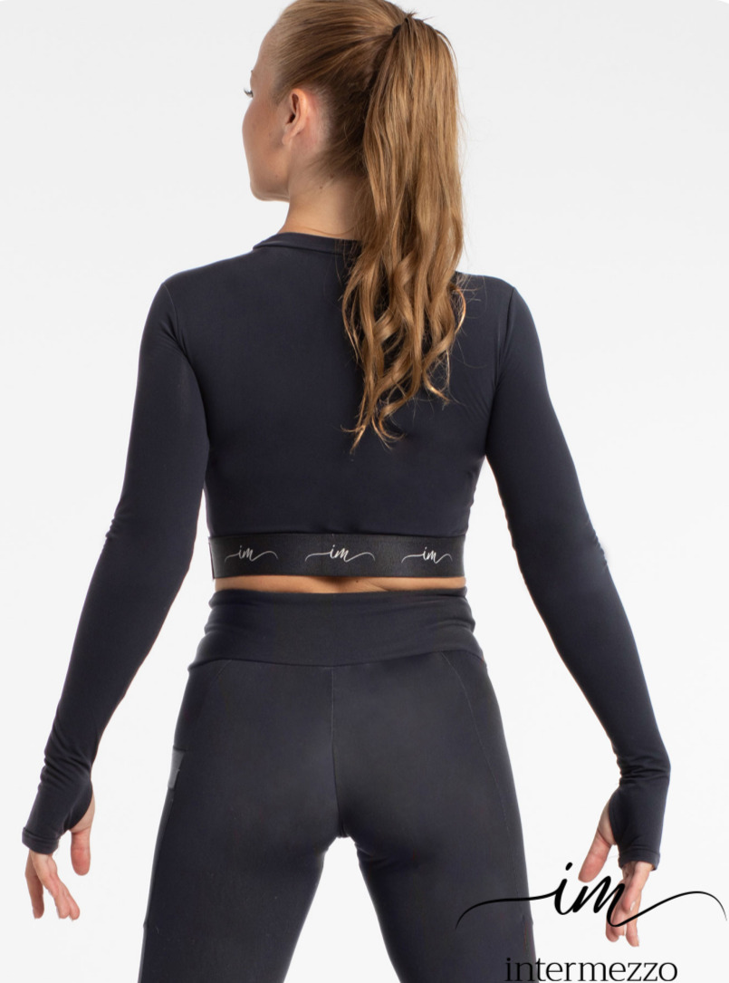 Elastic with Intermezzo logo on the waist and thumb loop.